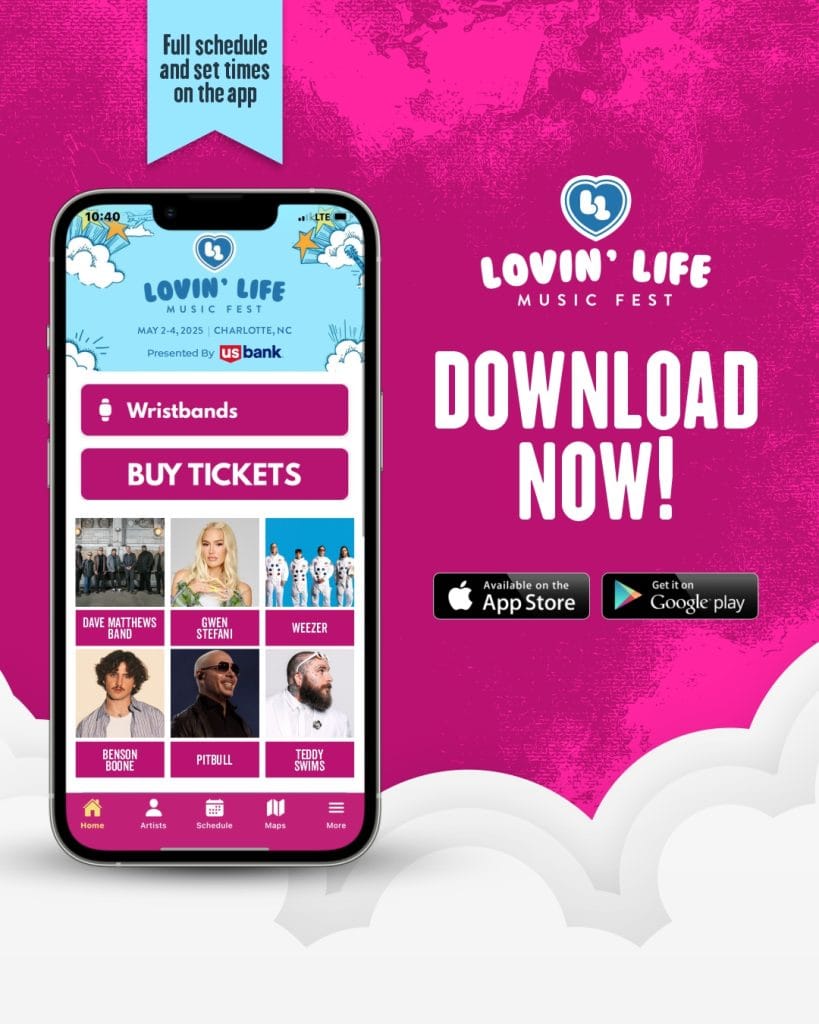 Get ready to jam to the sounds of your favorite artists like never before! The Lovin’ Life Music Fest is turning up the volume on your fest experience with the launch of its official mobile app. Download now and let the countdown to an unforgettable weekend begin! Register your wristbands when you get them and don’t forget to link your credit card for convenient ways to pay throughout the fest grounds.